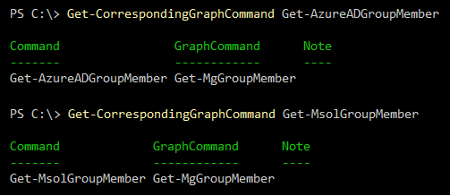 Get-CorrespondingGraphCommand Get-MsolGroupMemberGet-CorrespondingGraphCommand Get-AzureADGroupMember