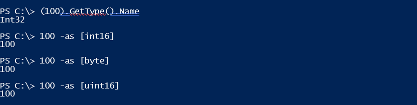 The number 100 is stored as [Int32] by default, consuming 32 bits. However, it can also be represented by other .NET types, such as [Int16] (16 bits) or [Byte] (8 bits). The difference, as before, is the numeric range:
