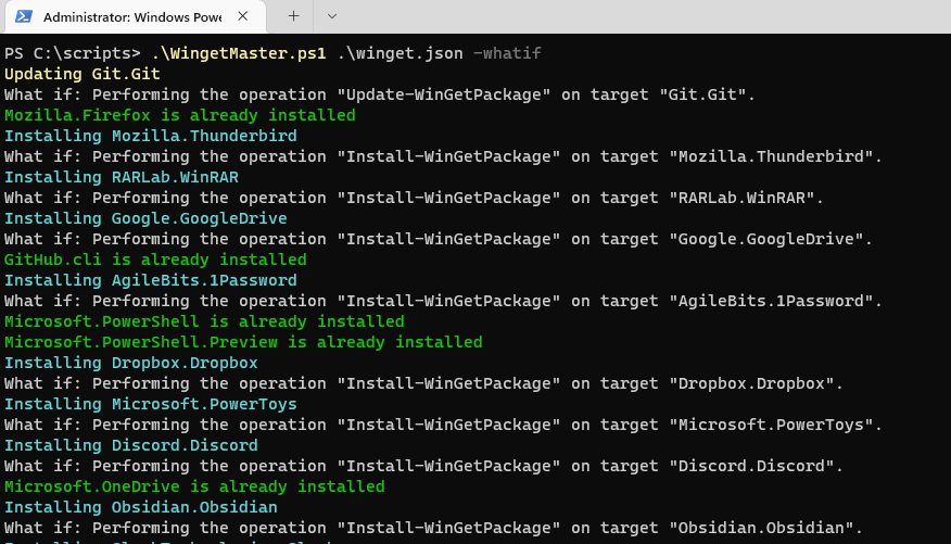 Where this module is worth your time, despite the shortcomings, is in scripting. You can use the module to automate the management of your desktop applications. This is useful when building test systems. Or if you want a way to ensure your desktop is configured the way you need it. It is much easier to script with PowerShell than to use the native winget command-line tool.