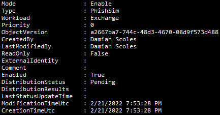 New-PhishSimOverridePolicy -Name ' PhishSimOverridePolicy'