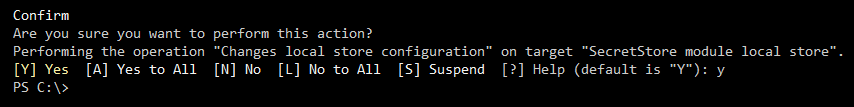 After loading the two modules as shown previously, we now need to register a vault to be used. In the below example, we are creating a local machine vault accessible for only the local user.