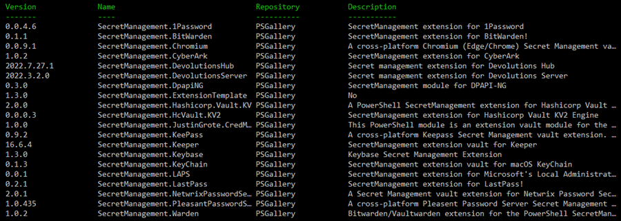 - SecretManagement Powershell module