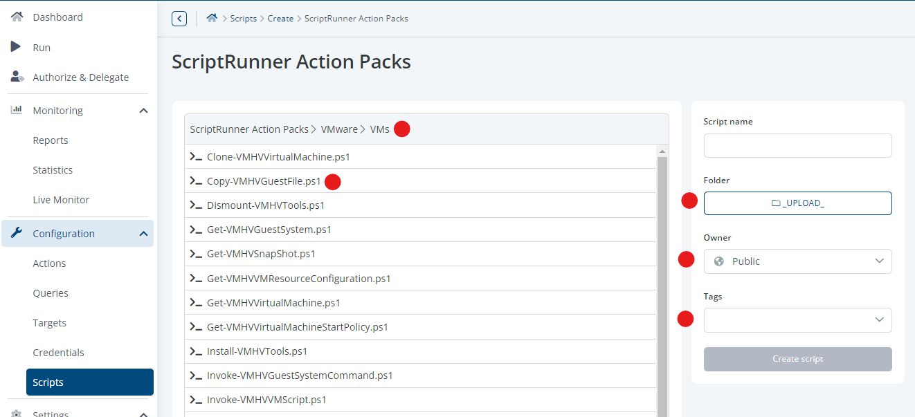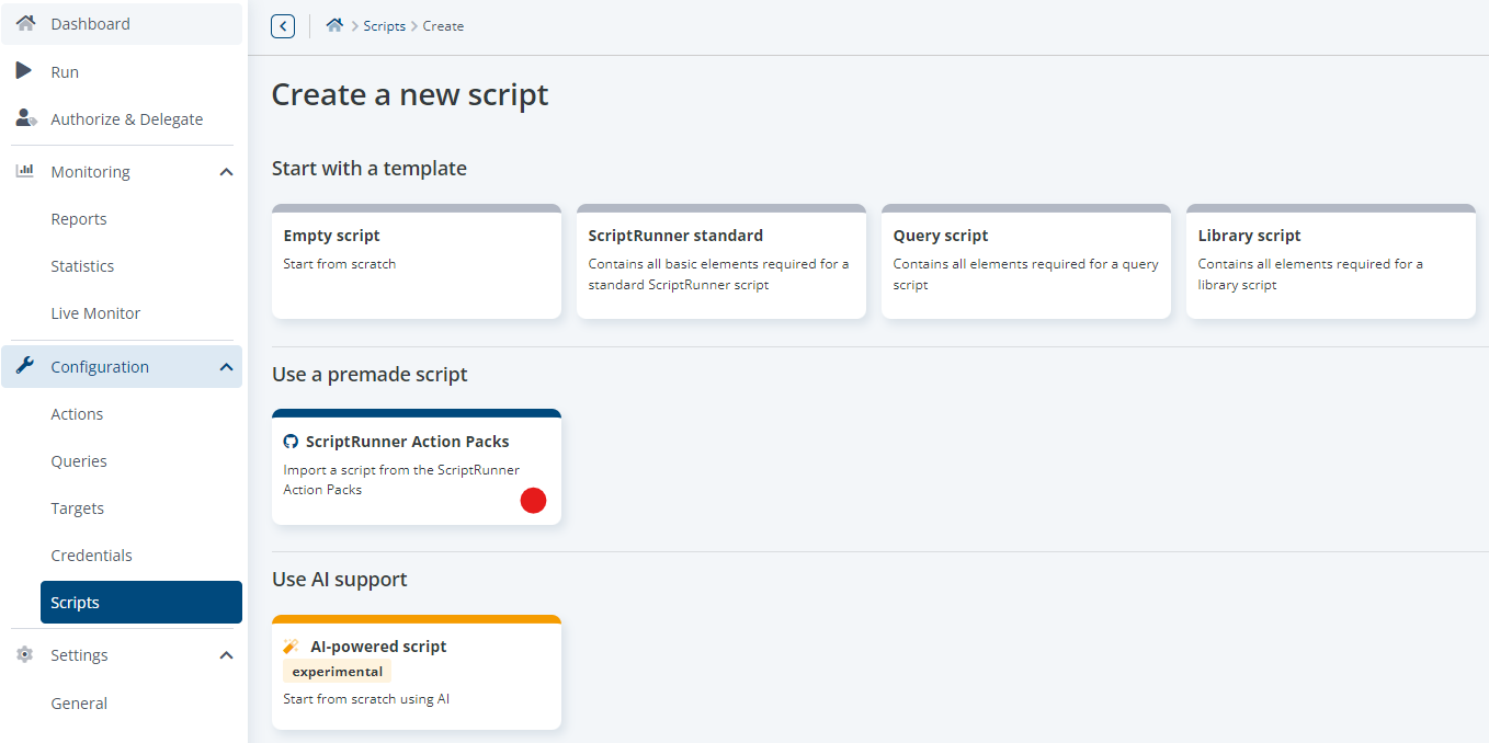 - direct selection and download of individual scripts from ScriptRunner Action Packs