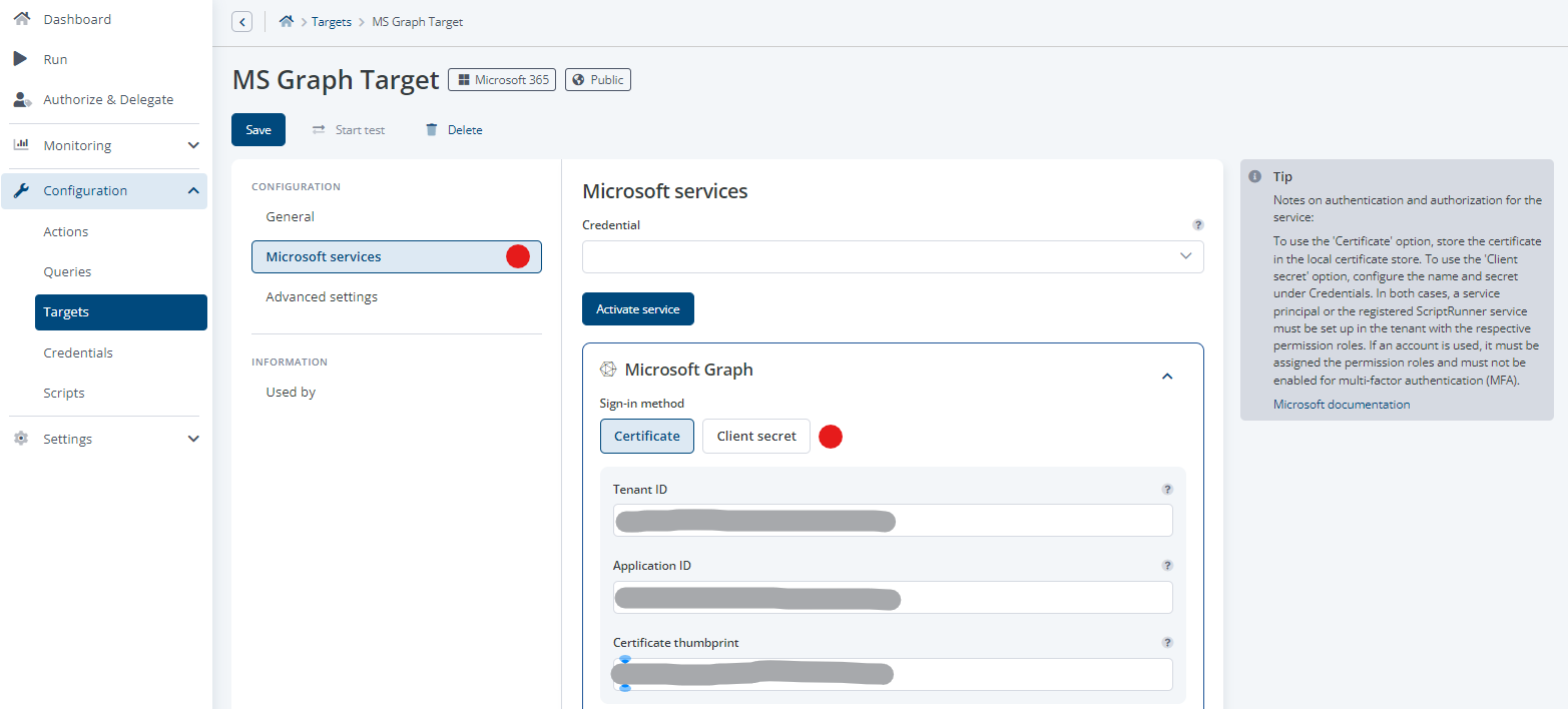 Microsoft has again made changes and additions to the connection management with the PowerShell module in version 2. The ScriptRunner target for Microsoft Graph now automatically takes these new settings into account. ScriptRunner server can handle both versions. If an installed version 2 of the PowerShell module is detected, the new connection management is automatically used when establishing a connection. Additional settings are not necessary.