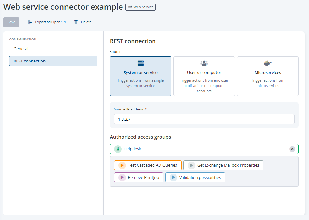 Integration Connectors connect ScriptRunner to a customer's infrastructure, be it IDM for authentication, enterprise password management for managing secrets, or writing information to other systems for monitoring and control of IT infrastructure. Integration connectors are configured on the ScriptRunner server, and their configuration can be retrieved at any time via the portal.