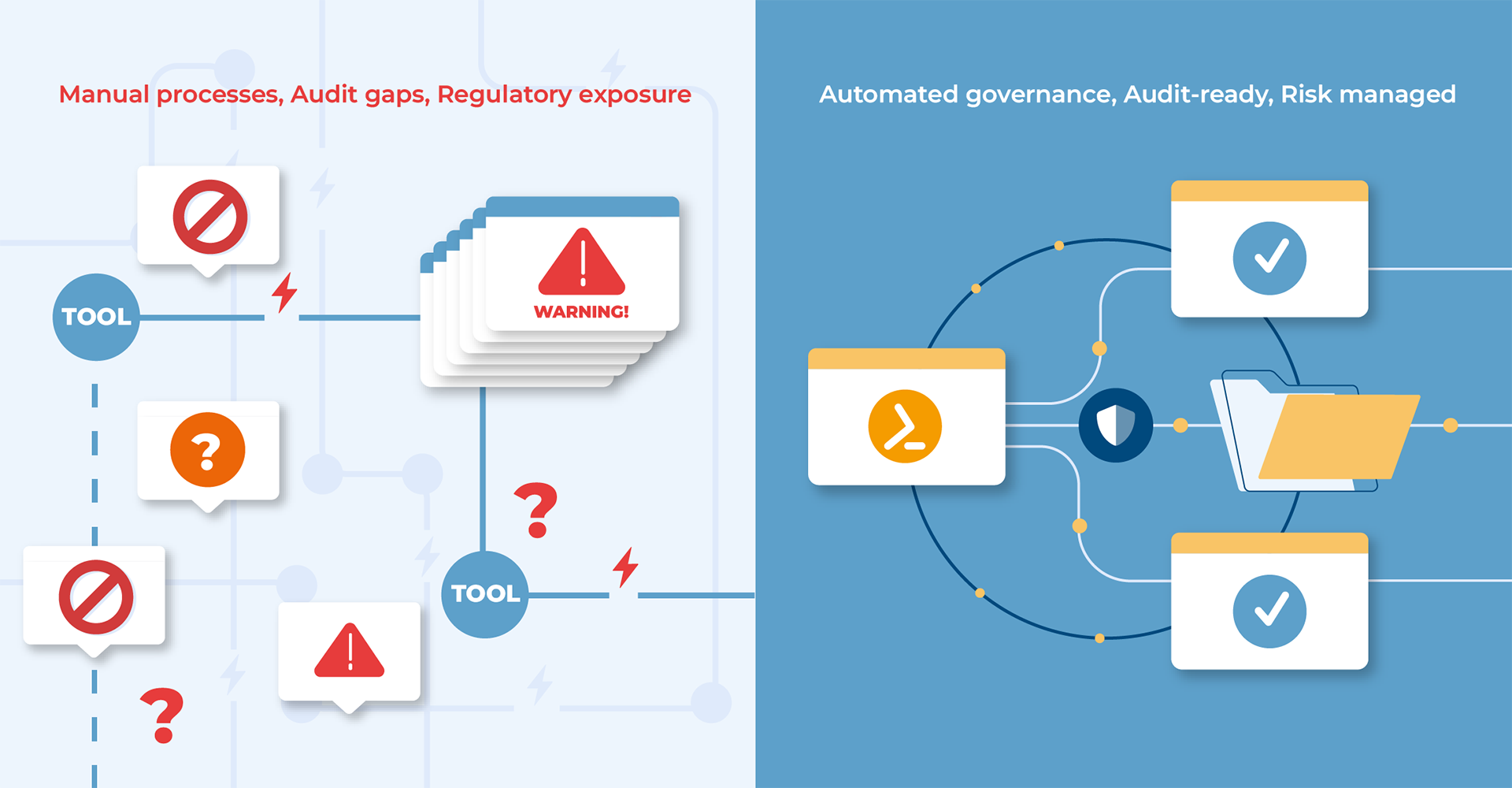 The fundamental problem is timing. Governance frameworks are most effective when implemented as core automation capabilities rather than retrofitted controls. Organizations that treat compliance as an afterthought struggle to show the systematic oversight regulations require.